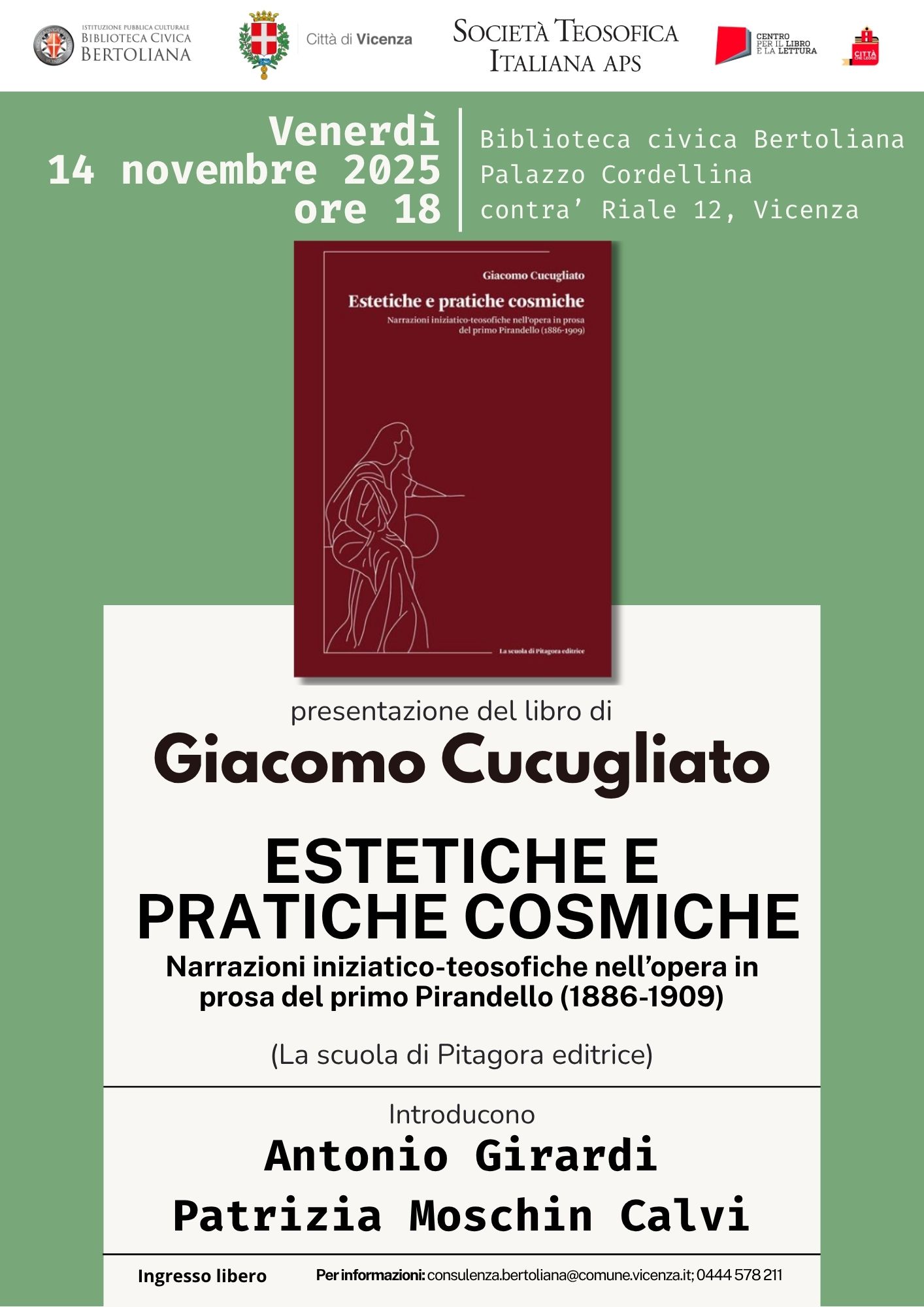 Giovedì 14 novembre alle ore 18.00, presso Palazzo Cordellina a Vicenza, si terrà la presentazione del volume Estetiche e pratiche cosmiche di Giacomo Cucugliato.