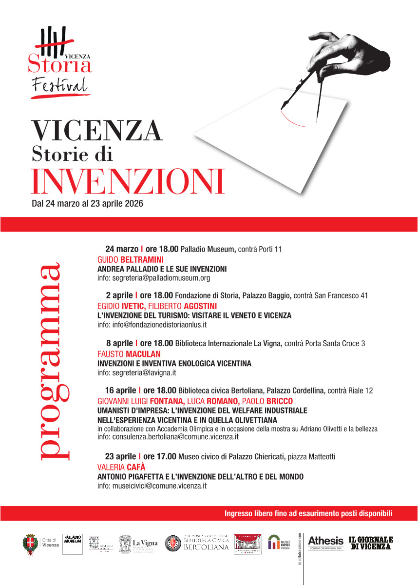 Giovedì 16 aprile, a Palazzo Cordellina, un incontro speciale della rassegna "Storie di Invenzioni" nell'ambito del Vicenza Storia Festival.