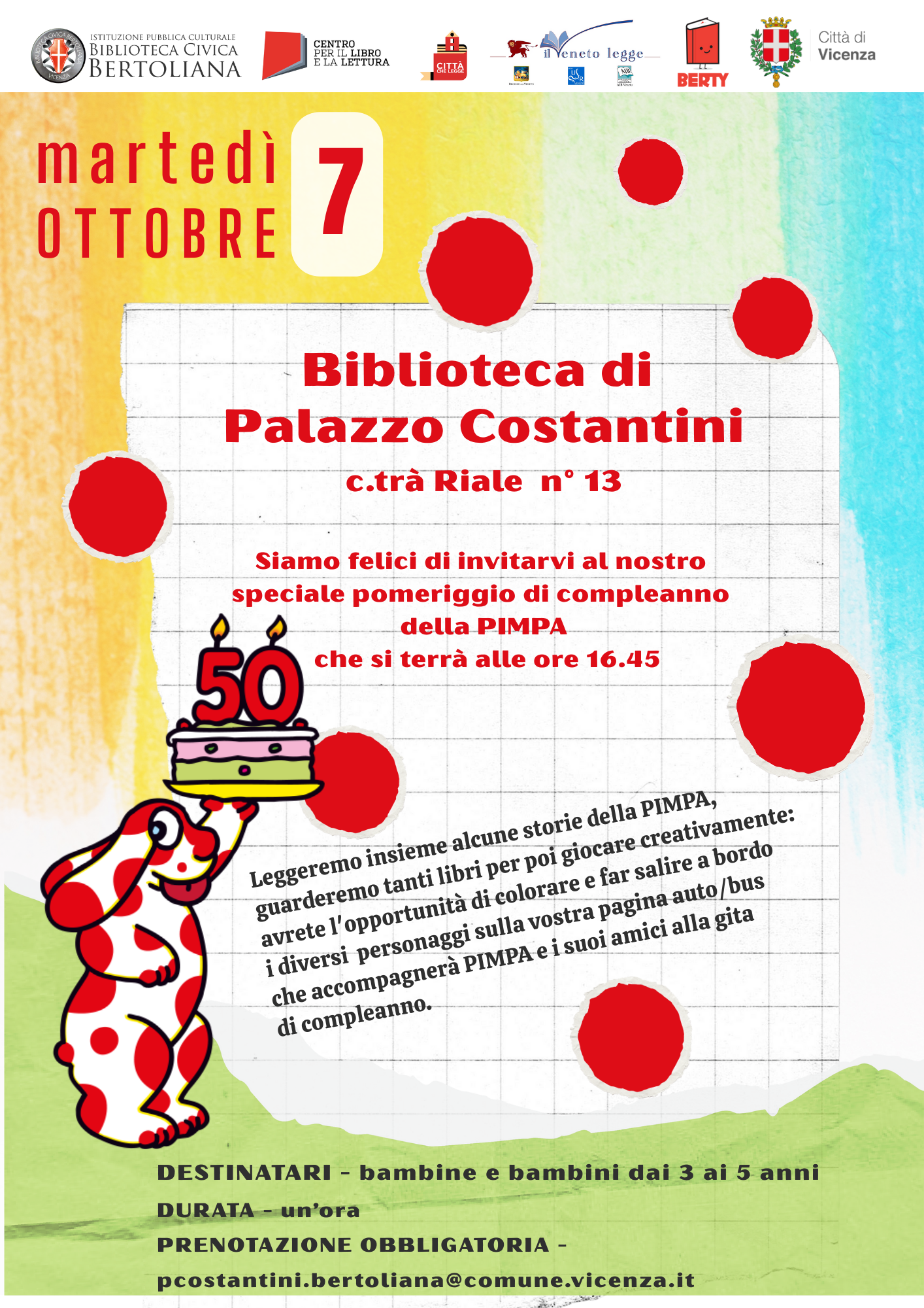 Martedì 7 ottobre, alle ore 16.45 a Palazzo Costantini, festeggeremo insieme il compleanno della Pimpa!