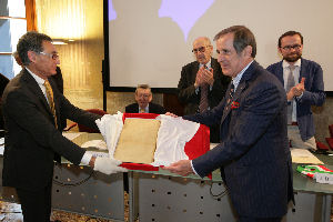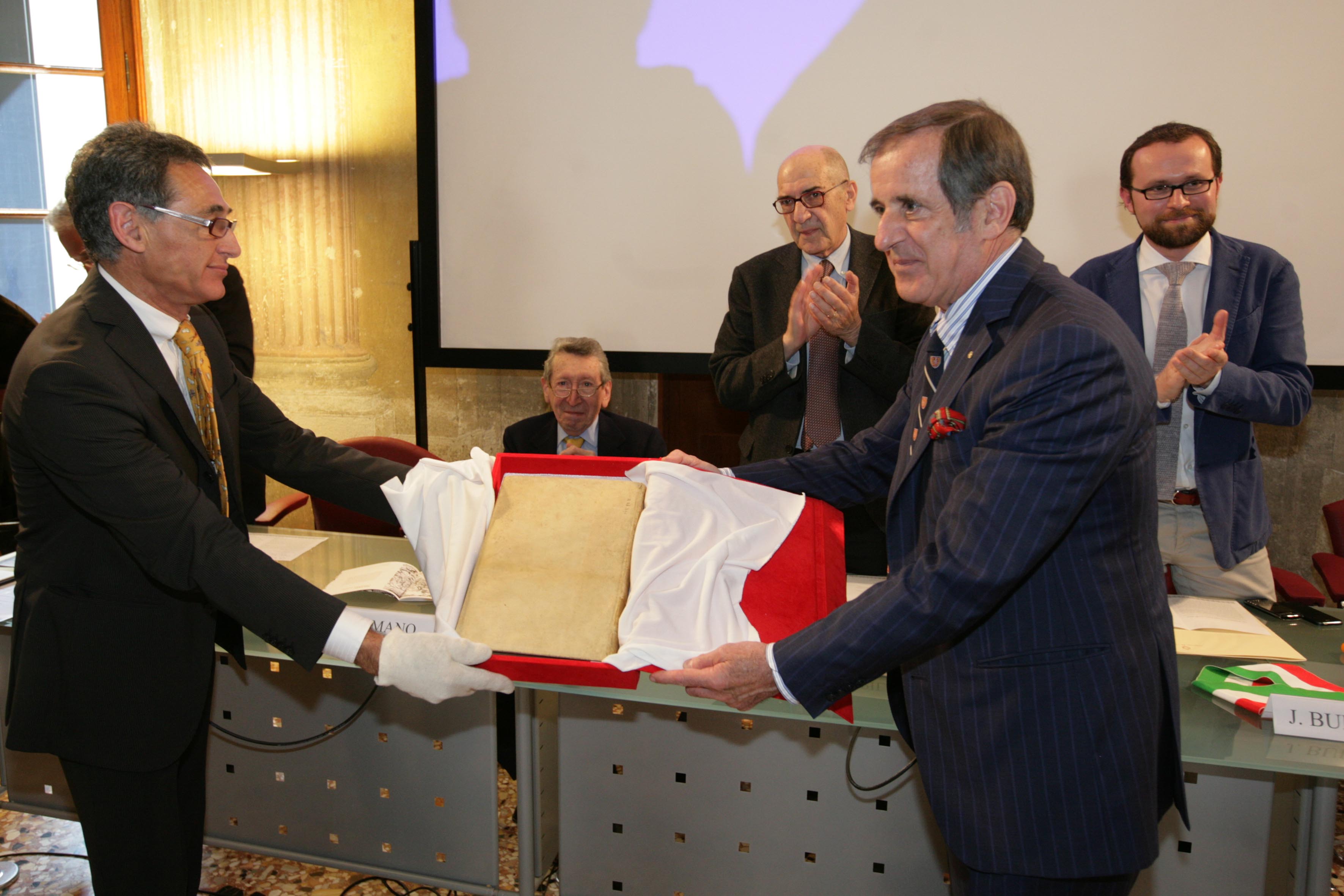 Oggi a Palazzo Cordellina si è tenuta la cerimonia pubblica di consegna dello straordinario documento alla presenza del donatore Luciano Giacomelli, del vicesindaco e assessore alla crescita Jacopo Bulgarini d'Elci e del presidente dell’Istituzione Bertoliana Giuseppe Pupillo. La prestigiosa figura dell’ambasciatore Sergio Romano ha proposto una lectio su Luigi da Porto, preceduta dagli interventi di Giovanni Pellizzari, Laura Sbicego e Giorgio Lotto, e da un intermezzo musicale al pianoforte proposto dal conservatorio di musica Pedrollo. A condurre le fila dell’incontro è stato Antonio Di Lorenzo, capo redattore de “Il giornale di Vicenza”, che ebbe occasione di intervistare il professore Clough.