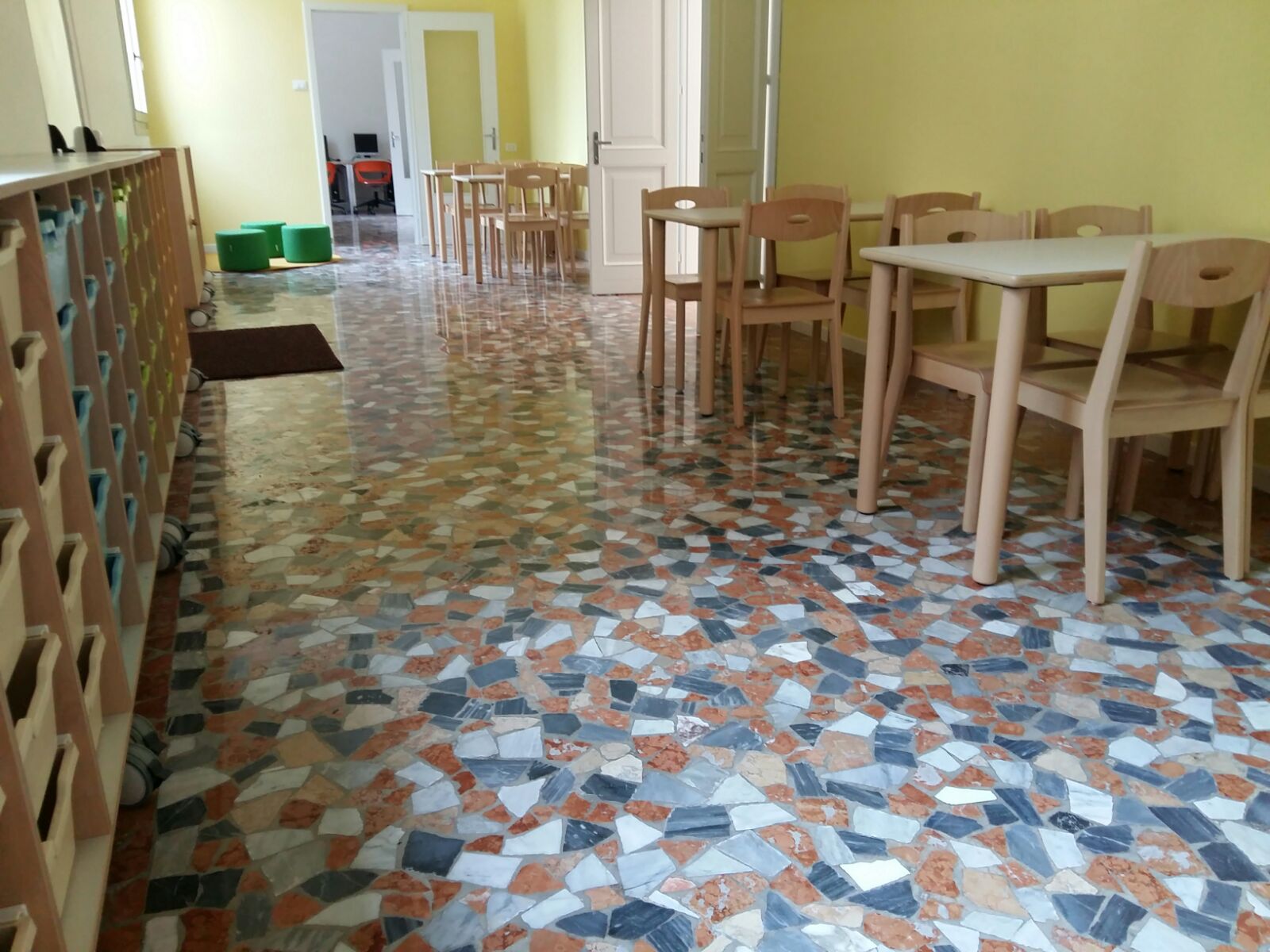 I lavori effettuati hanno comportato il rinnovo totale degli impianti elettrico e di raffrescamento, anche nell'ottica del risparmio energetico, oltre che varie opere murarie (demolizione dei controsoffitti, smantellamento dell'impianto illuminazione, tinteggiatura, rifacimento dei servizi igienici con nuovi sanitari, pavimenti e rivestimenti, sostituzione delle porte e adeguamento di un servizio per disabili), per un costo complessivo di euro 147.614.