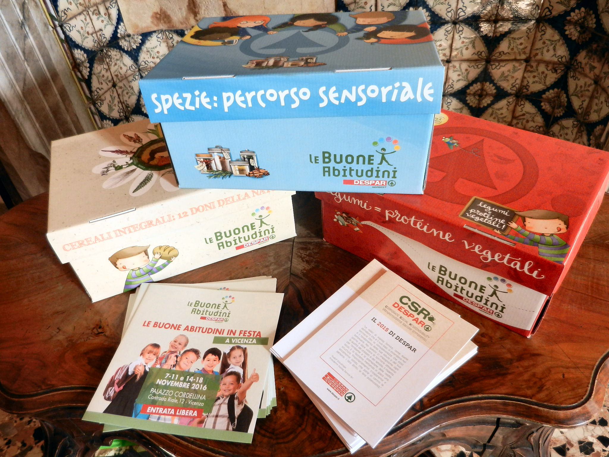“Le Buone Abitudini” è, infatti, realizzata dall'assessorato alla formazione del Comune di Vicenza in collaborazione con Aspiag Service (la concessionaria Despar per il Nordest), e la biblioteca civica Bertoliana, in occasione del decimo anniversario del progetto di educazione alimentare promosso da Despar.