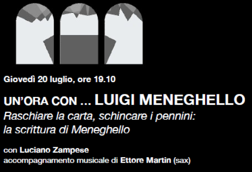 E' dedicato a Luigi Meneghello il secondo appuntamento di "Inchiostro un'ora con ...", organizzato giovedì 20 luglio alle 19.10 nel chiostro di Palazzo San Giacomo, in contra' Riale 5.