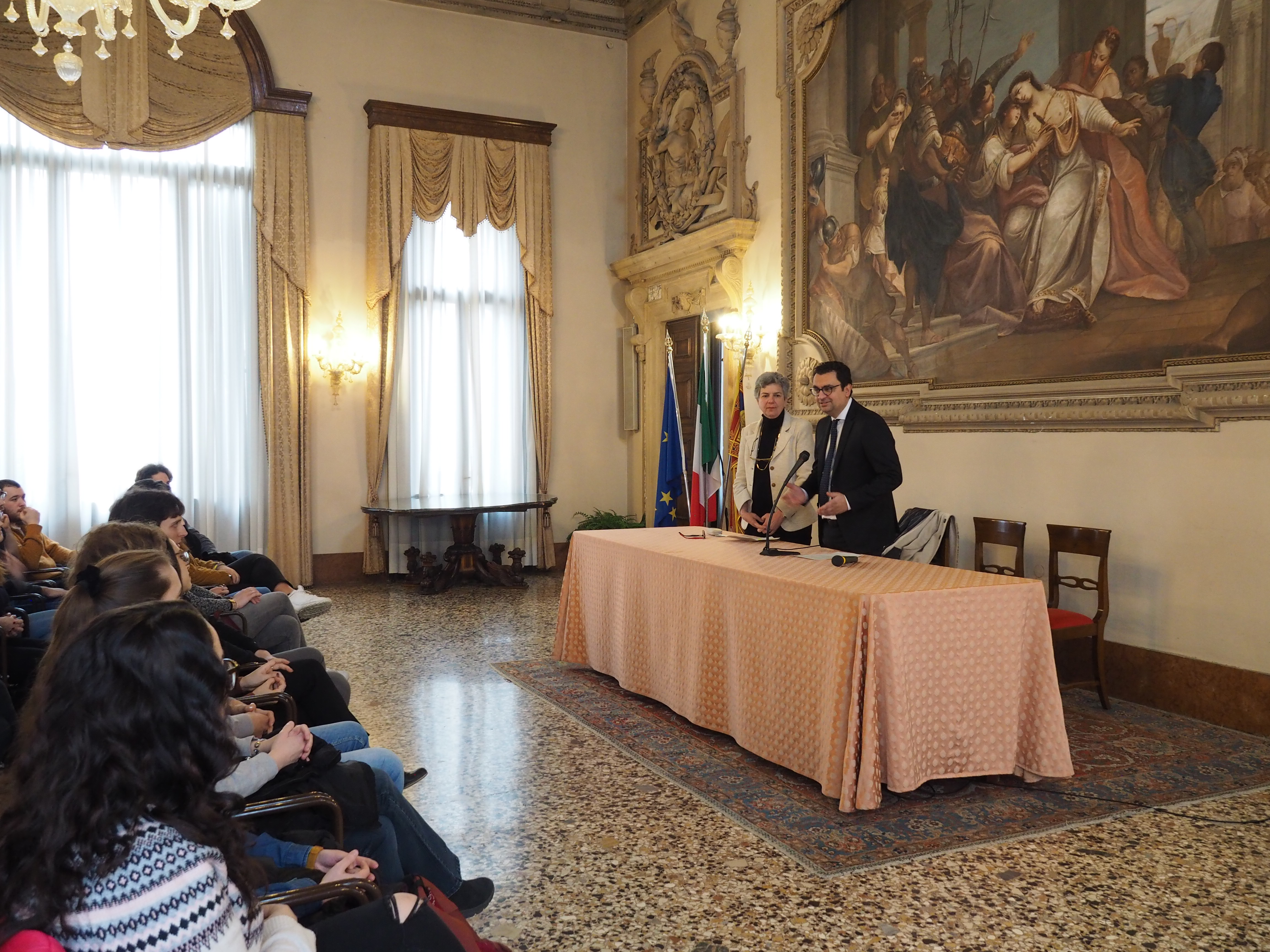 Questa mattina il sindaco Francesco Rucco e l'assessore alla formazione Cristian Tolio hanno incontrato, nella sala degli Stucchi di palazzo Trissino, i 19 giovani che da qualche settimana hanno cominciato il servizio civile universale nel Comune di Vicenza.